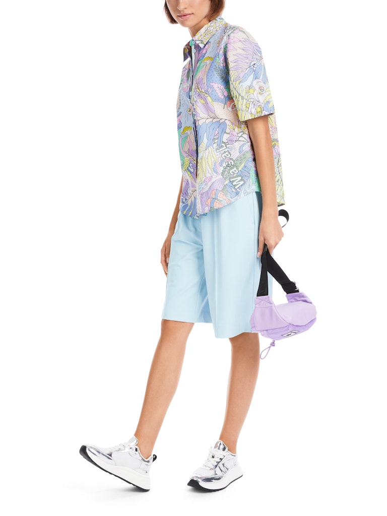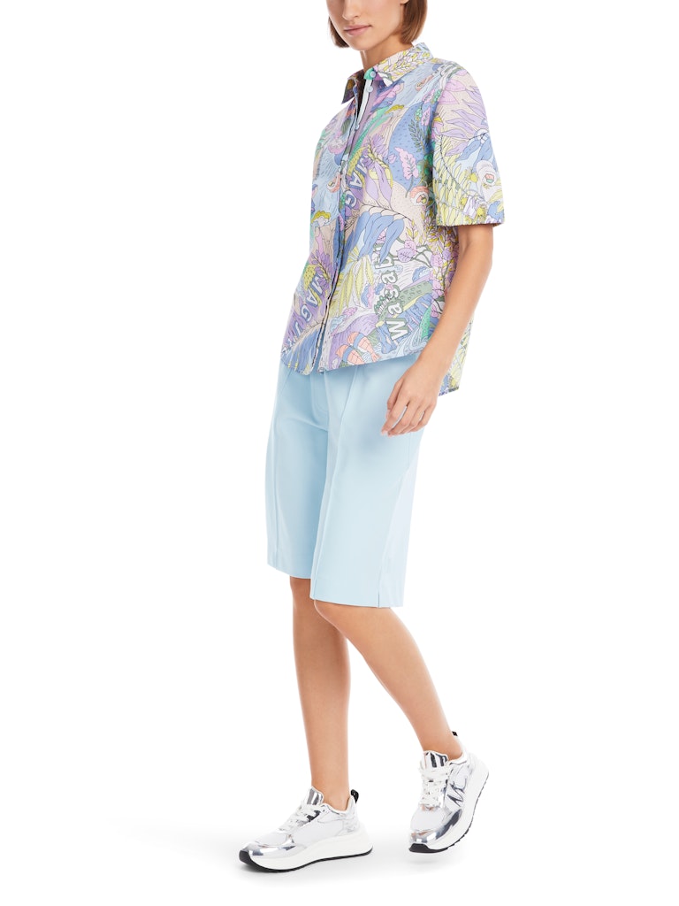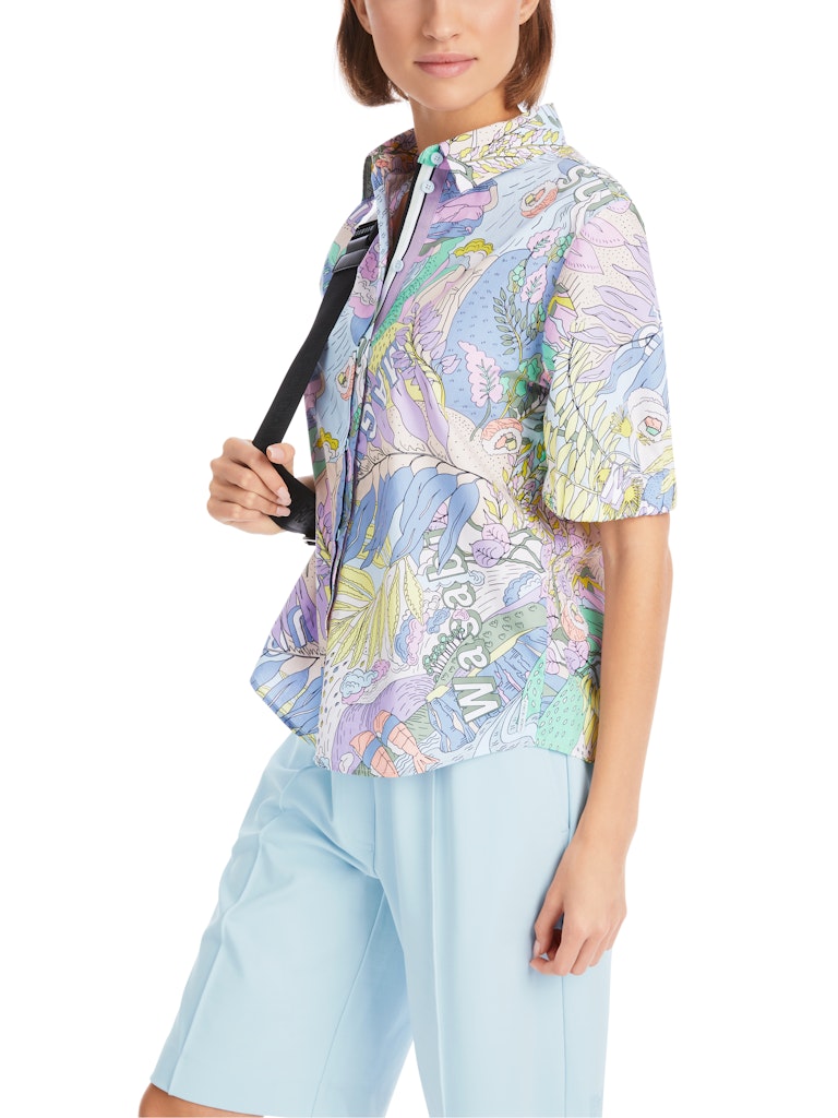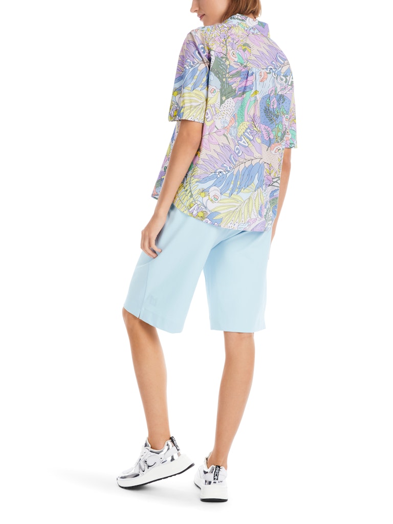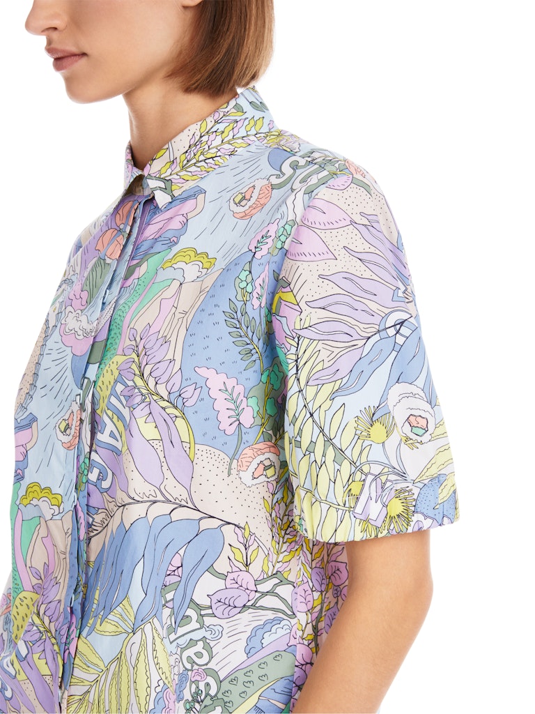 Bedruckte Bluse "Rethink Together"|Gefertigt aus reiner Bio-Baumwolle überzeugt diese weite Bluse mit ihrem Tragekomfort. Die Bluse trägt das Nachhaltigkeitslabel "Rethink Together". Eyecatcher ist das Allover-Hawaii-Dessin aus der aktuellen Sky-Colours-Selektion. Einzigartig ist zudem die doppelte Knopfleiste. Die kurzen Ärmel kommen mit elastischem Bund, der Saum ist abgerundet.|Weite Form|Abgerundeter Saum|Rethink Together|Aus feiner Bio-Baumwolle|Das Model ist 179 cm groß und trägt N3/38.