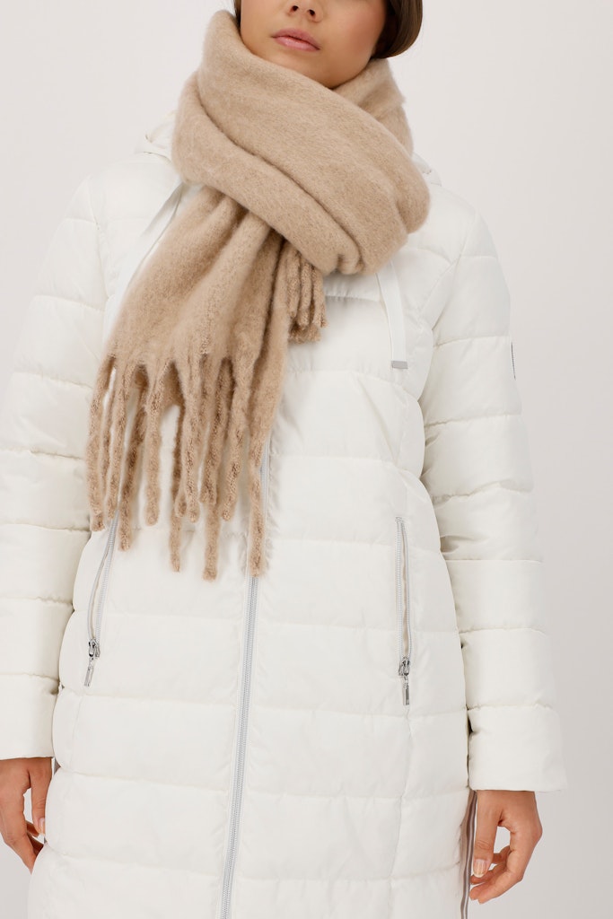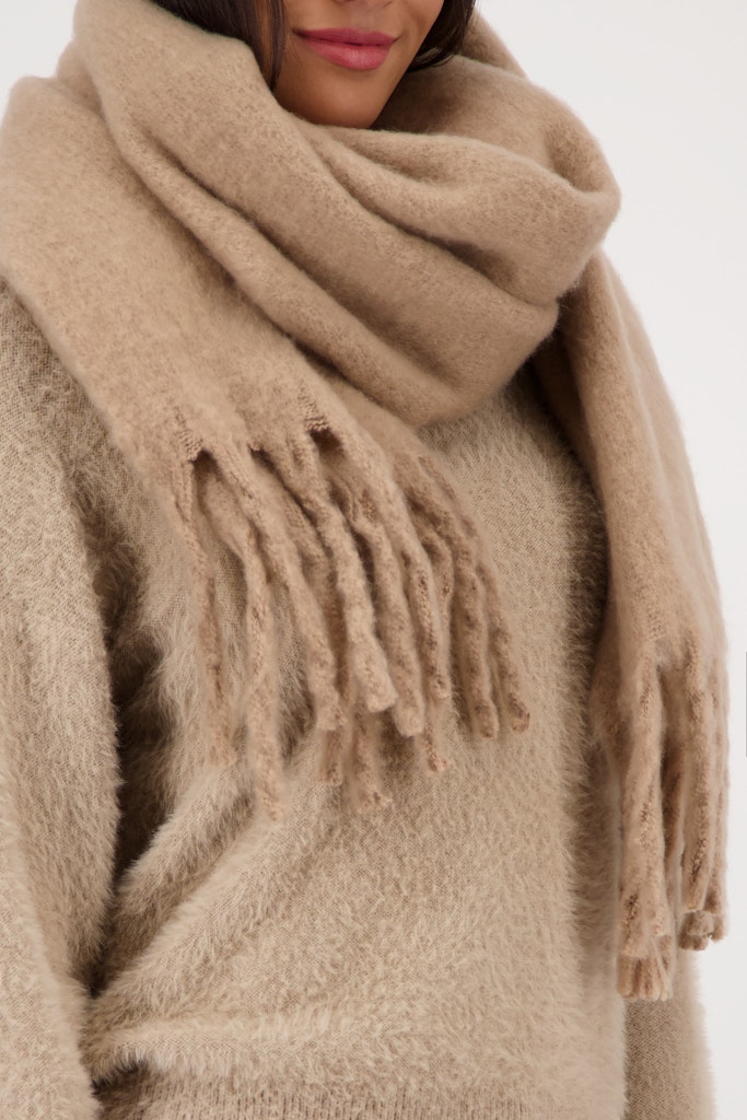 Der Fransenschal von Monari ist das perfekte Accessoire für stilvolle Herbst- und Winterlooks. In sanftem Camelton und mit flauschiger Haptik bringt er nicht nur Wärme, sondern auch eine elegante Note in jedes Outfit. Die langen, gedrehten Fransen sorgen für einen modischen Akzent und runden das Design charmant ab - ein Must-have für die kalte Jahreszeit.