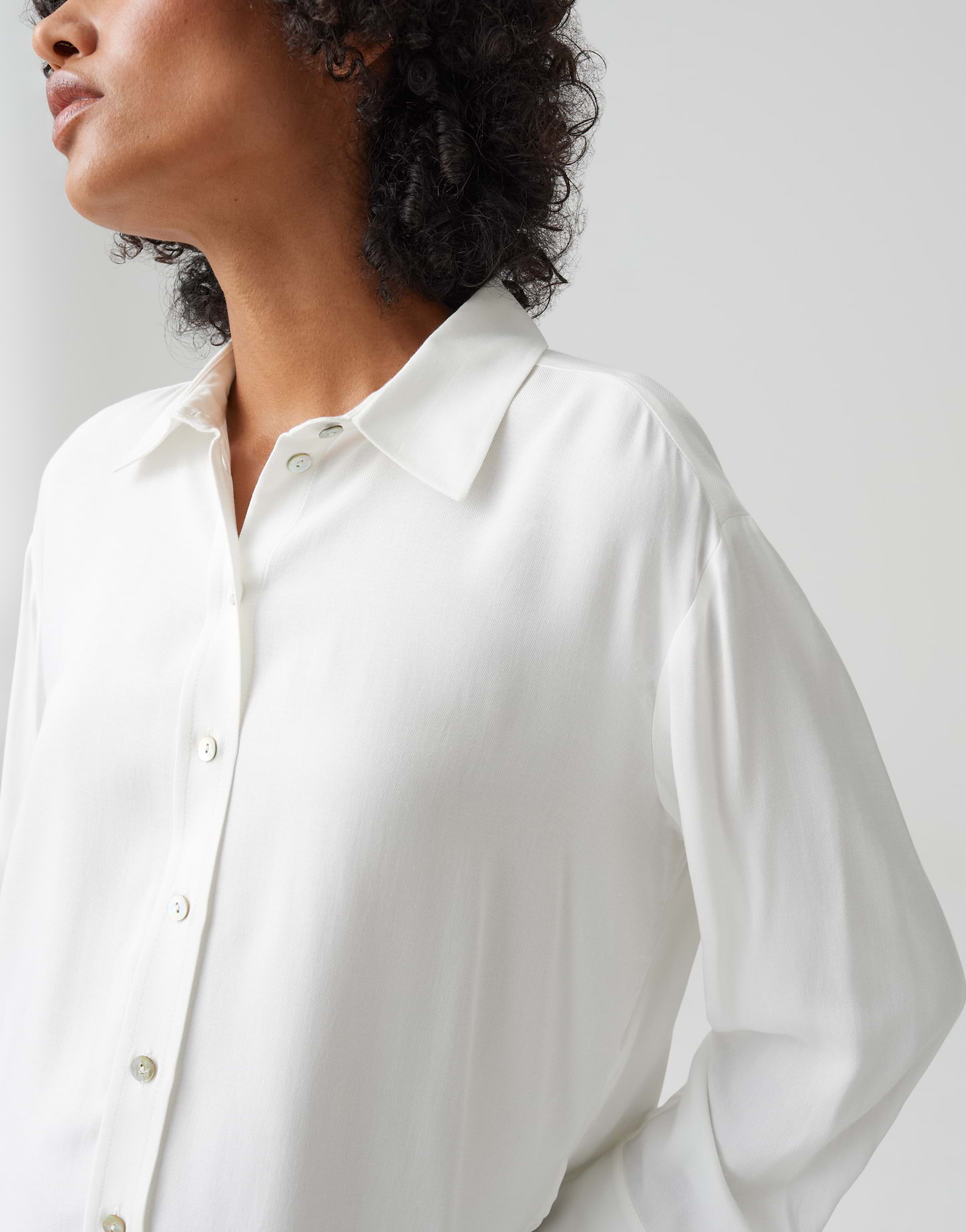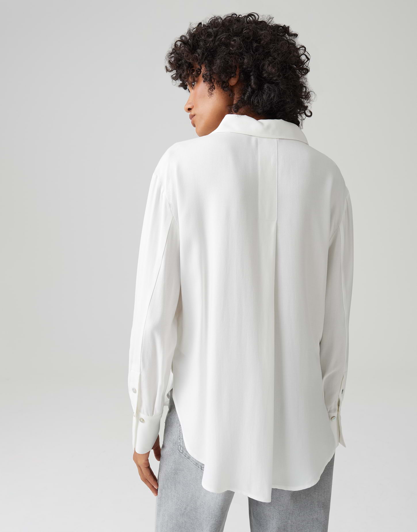 Die cremeweiße Bluse "Fahla" von OPUS überzeugt durch ihre zeitlose Eleganz und ein fließendes Tragegefühl dank reiner Viskose. Mit ihrer klassischen Schnittführung und der durchgehenden Knopfleiste ist sie ein vielseitiger Allrounder für Büro und Freizeit - schlicht, aber stilvoll und wunderbar kombinierbar.