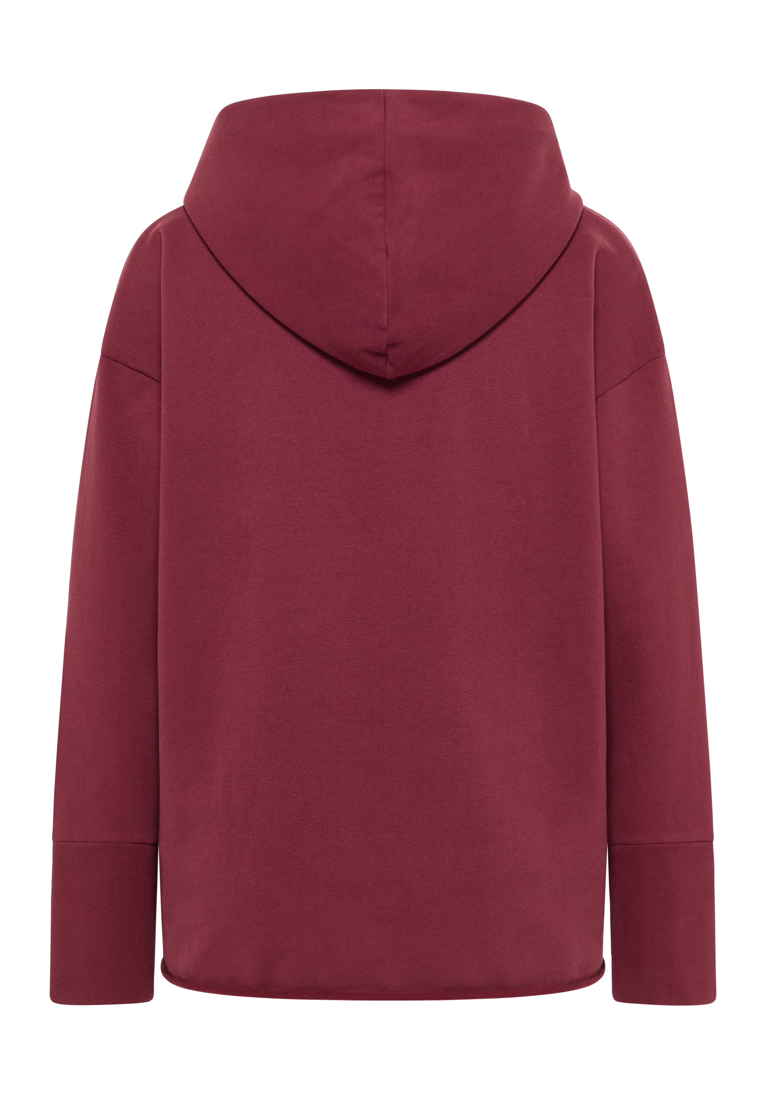 -Details: Kapuze mit Tunnelzug, breiter Saumabschluss, überschnittene Schultern, leicht verlängertes Rückenteil