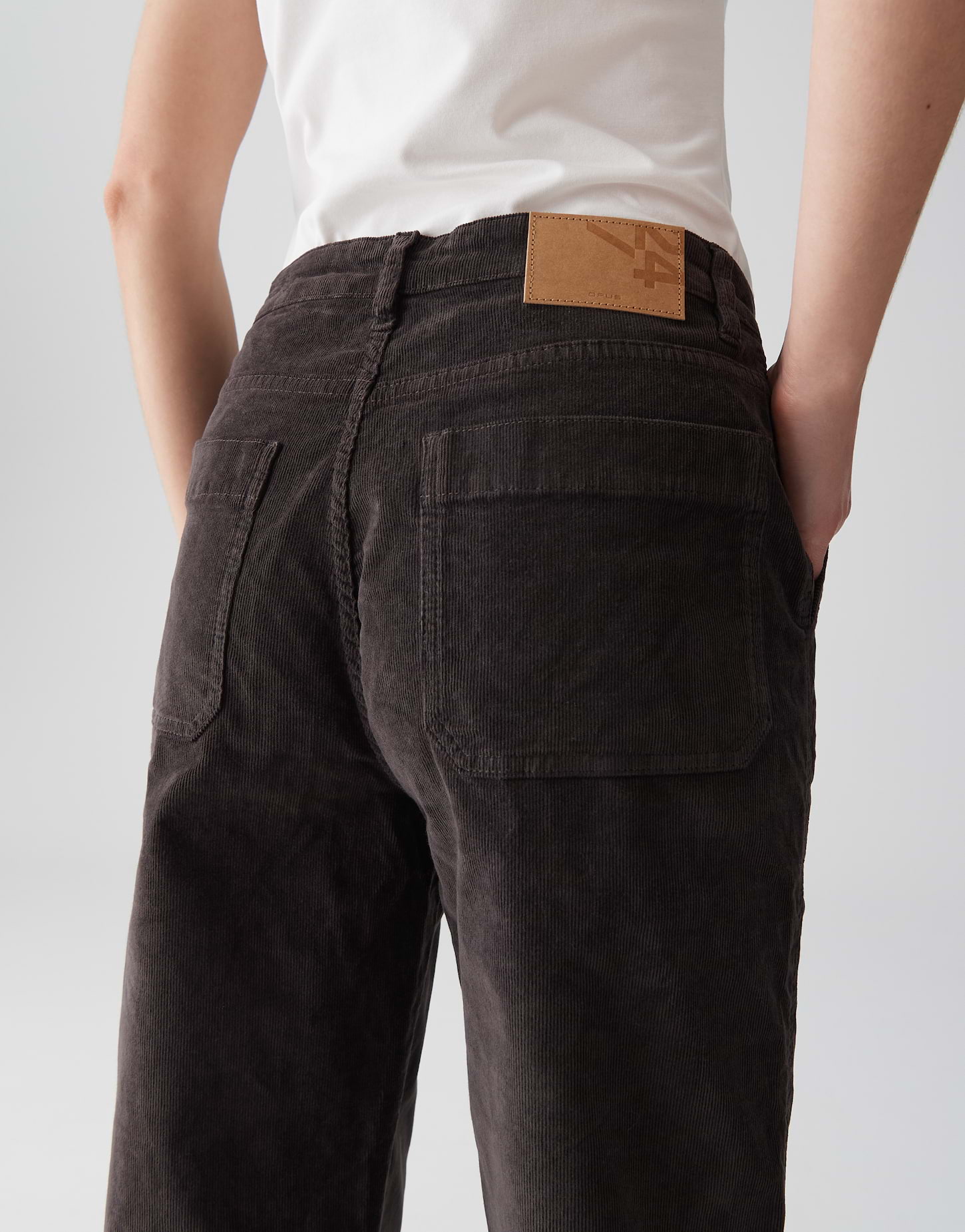 - Materialeigenschaften: Cord, feine Rippstruktur, samtige Oberfläche, elastisch, weicher Griff