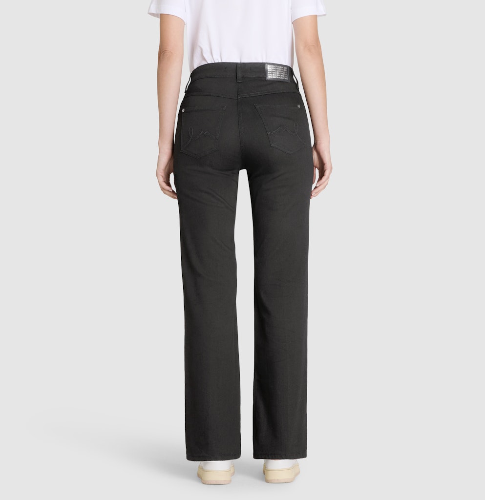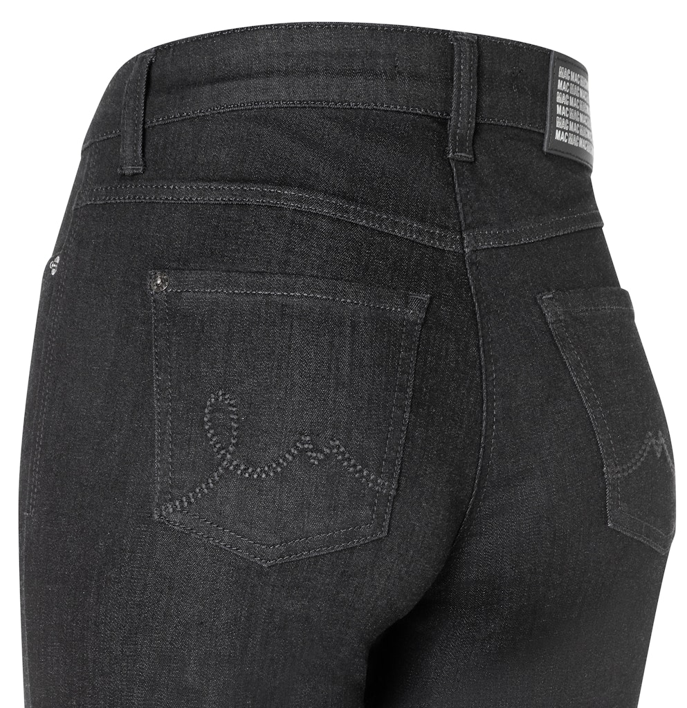 Flared Fit, Bootcut, gerades Bein, ausgestellter Saum, schlanke Silhouette, angezogene, erhöhte Leibhöhe, bequeme Taille, Five Pocket, modernes Naht-Detail an den Gesäßtaschen, Authentic Stretch Denim, sehr hochwertige, elastische Denim-Qualität, figurformender Effekt, hervorragendes Rücksprung-Verhalten, authentische Optik, angenehmer Griff, hoher Tragekomfort, Das Model ist 1,75m groß und trägt die MAC Hosengröße 36, Fußweite bei Größe 36: 46cm