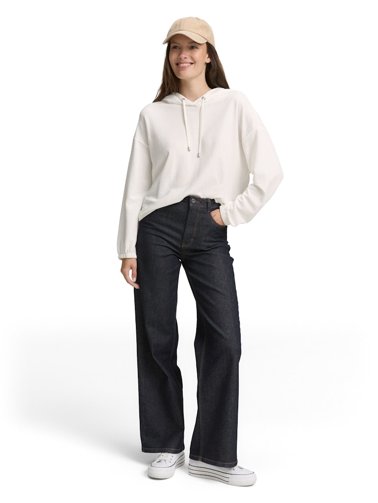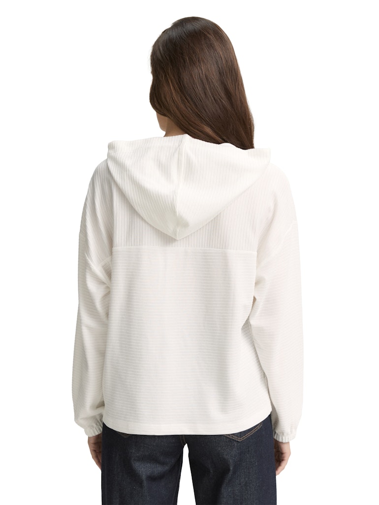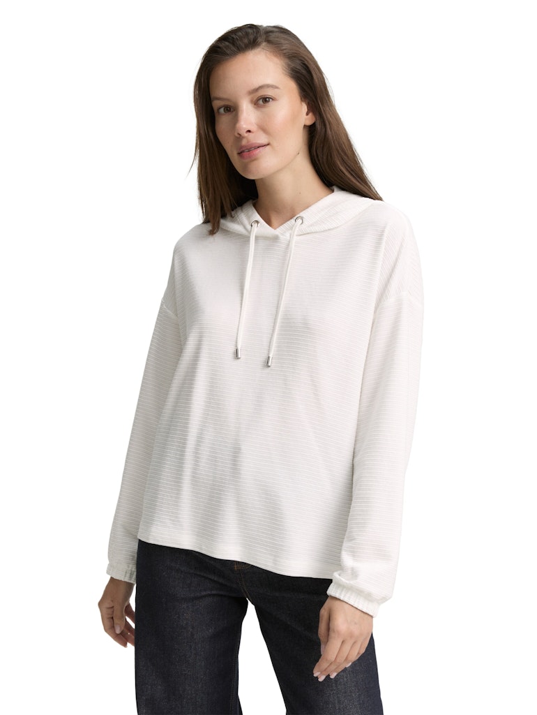 Longsleeve mit Kapuze und Kordelzug. Mit überschnittener Schulternaht und elastischem Gummibund am Ärmelsaum. Aus einem strukturierten Ottoman-Stoff.
