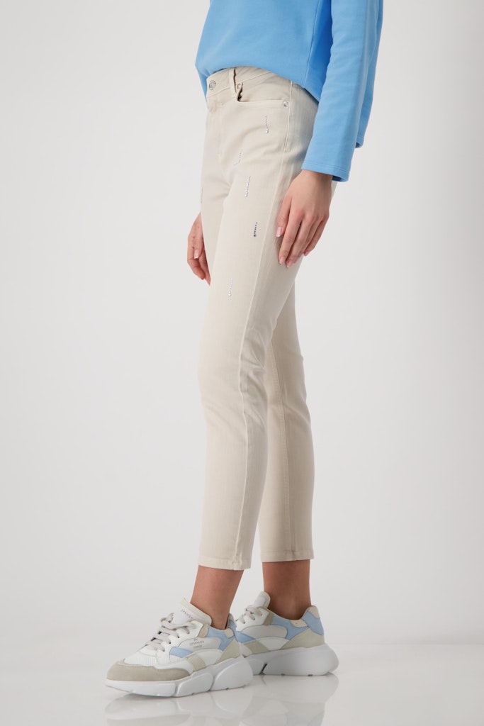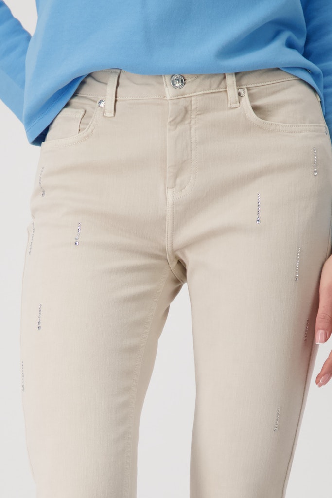 Diese trendige Jeans aus hochwertiger Baumwolle begeistert mit ihrem elastischen Material und funkelnden Strasssteinen.