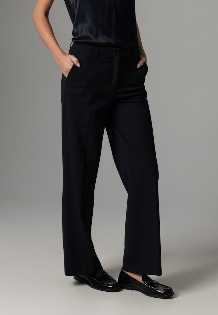 Die gepflegte Anzughose von MORE & MORE mit weitem Bein und Bügelfalte wird mit passendem Blazer zum stilvollen Business-Look. Sie kann aber genauso gut mit lässigem Pullover und Sneakers kombiniert werden.