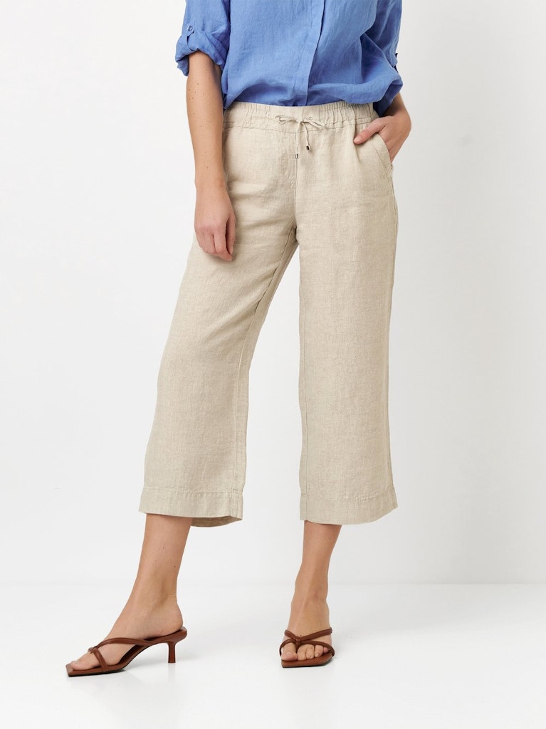 Damenhose Pia Wide Leg 3/4 - Beige - Qualität: - Hose mit entspannter Obeschenkelweite - Hohe Leibhöhe und normale Fußweite - Bequemer Gummibund für ein angenehmes Tragegefühl