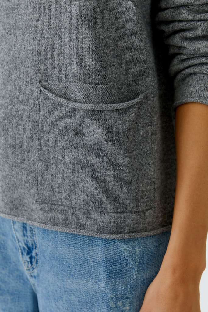 Rollkanten am Saum, Ärmelbündchen und Taschenabschluss