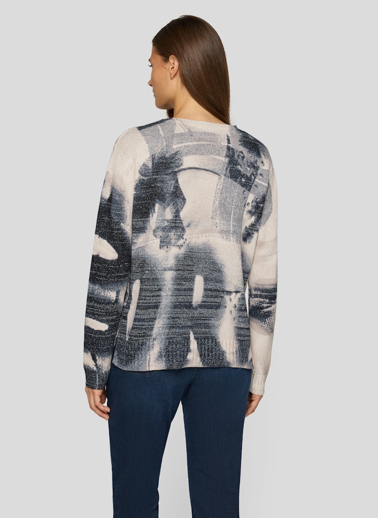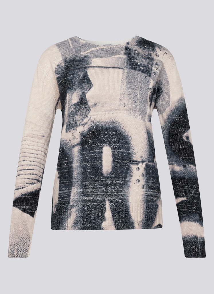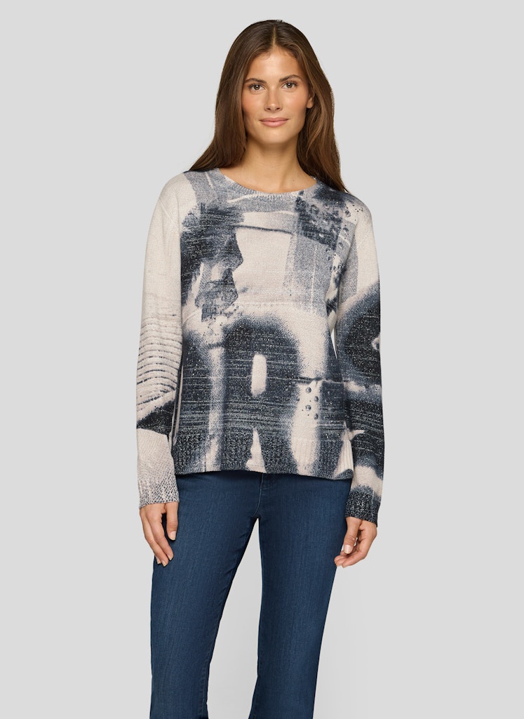 Der weich fallende Pullover setzt mit seinem eindrucksvollen Fotoprint ein modisches Statement. Strassdetails auf der Vorderseite sorgen für subtile Glanzeffekte und verleihen dem Look einen Hauch Extravaganz. Durch die bequeme Passform und den Rundhalsausschnitt ist er ideal für stilvolle Casual-Outfits geeignet. Angenehm weiches Material. Fotoprint auf der Front. Dekorative Strassdetails. Rundhalsausschnitt. Legere Passform.