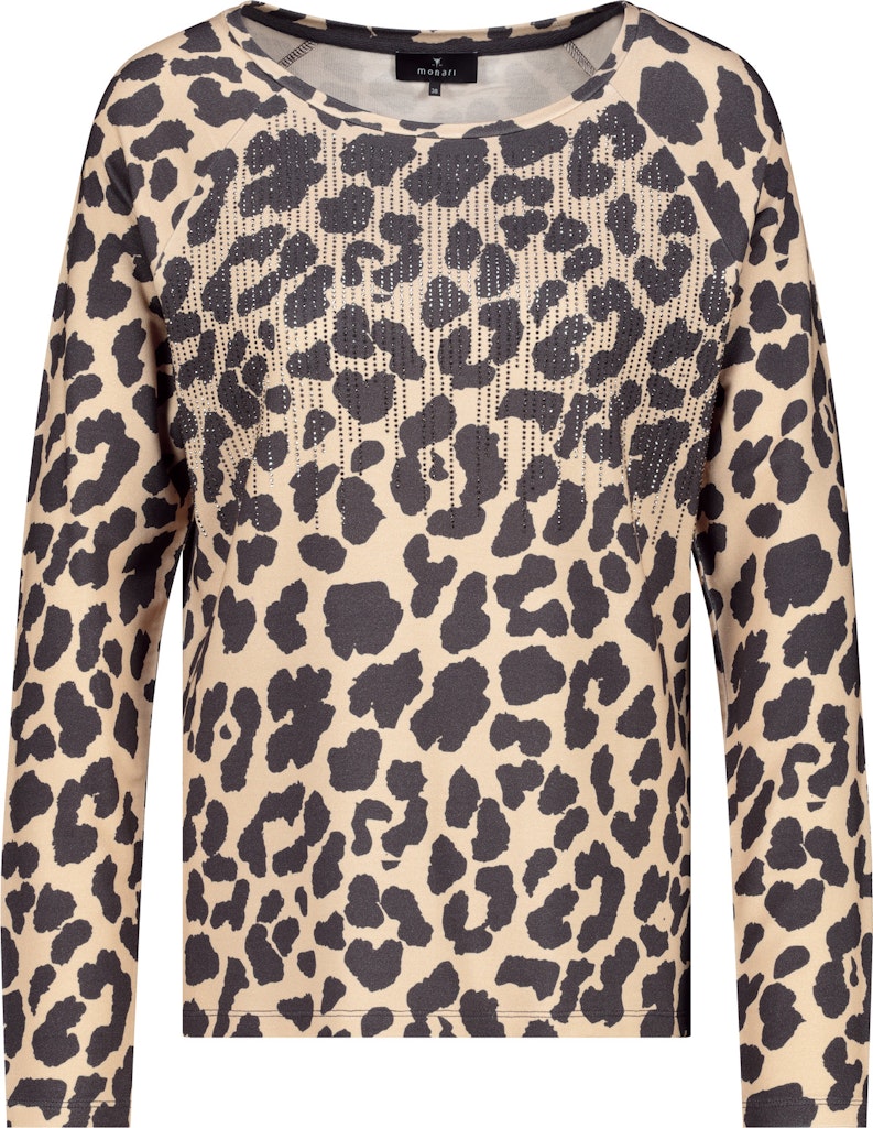 Erlebe eine stilvolle Eleganz mit unserem langärmligen Leomuster-Shirt aus fließender Viskose und mit funkelnden Strasssteinen.