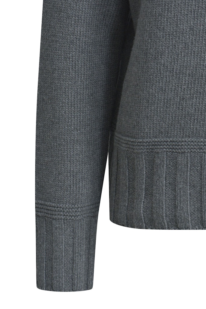 - Details: Rippstrick an Kragen, Saum und Ärmelenden