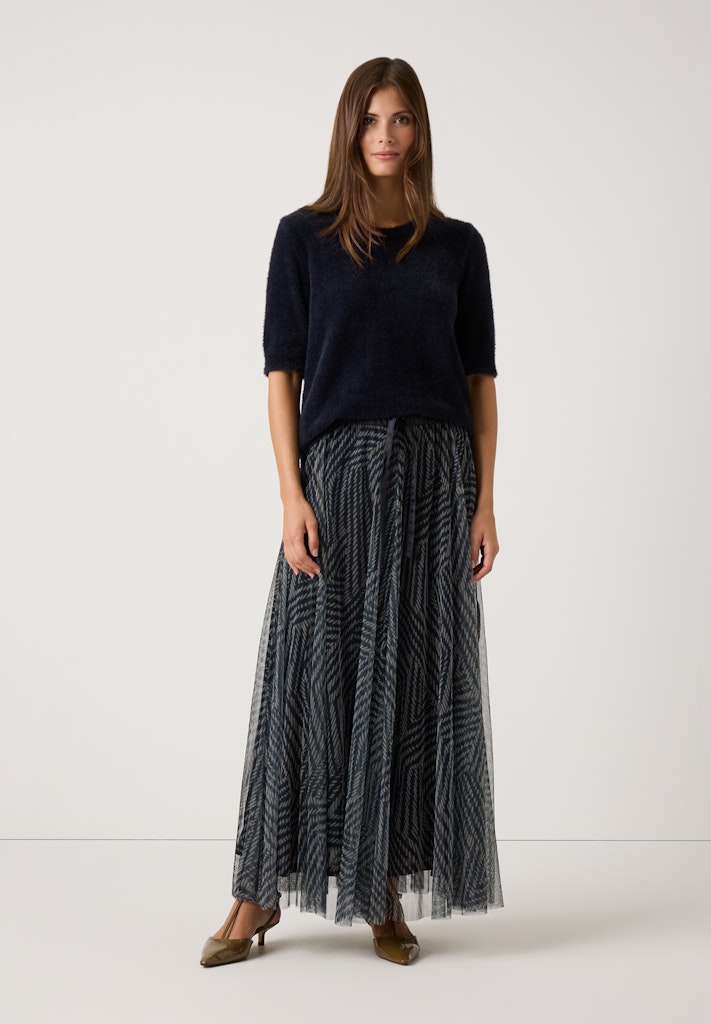 Der haarige Pullover von MORE & MORE mit kurzen Ärmeln sieht super-modern mit maxilangem Meshrock aus, kann aber auch sportiv mit Jeans oder karierter Hose gestylt werden.