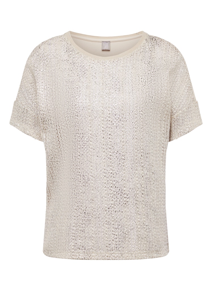 Dieses Shirt ist ein echter Hingucker: Die schimmernde Oberfläche verleiht jedem Outfit einen Hauch Eleganz und Glamour. Durch den klassischen Schnitt mit Rundhalsausschnitt und kurzen Ärmeln bleibt es dennoch alltagstauglich _ perfekt kombinierbar mit Jeans, Stoffhose oder Rock, ob festlich oder casual.Glitzernde Optik mit edlem Schimmer-Effekt.Rundhalsausschnitt mit fein eingefasstem Abschluss.Kurzarm _ ideal für den Übergang und warme Tage.Angenehm weiches Material mit leichtem Stretch.Vielseitig kombinierbar _ von festlich bis lässig-elegant.