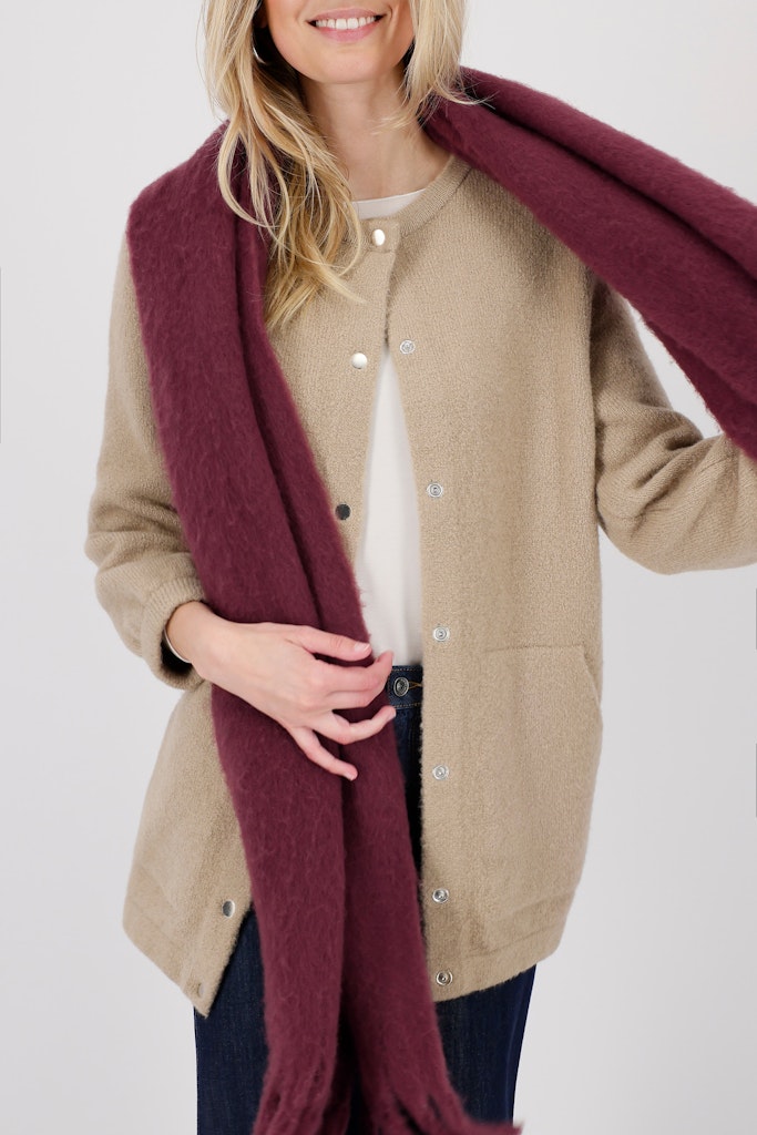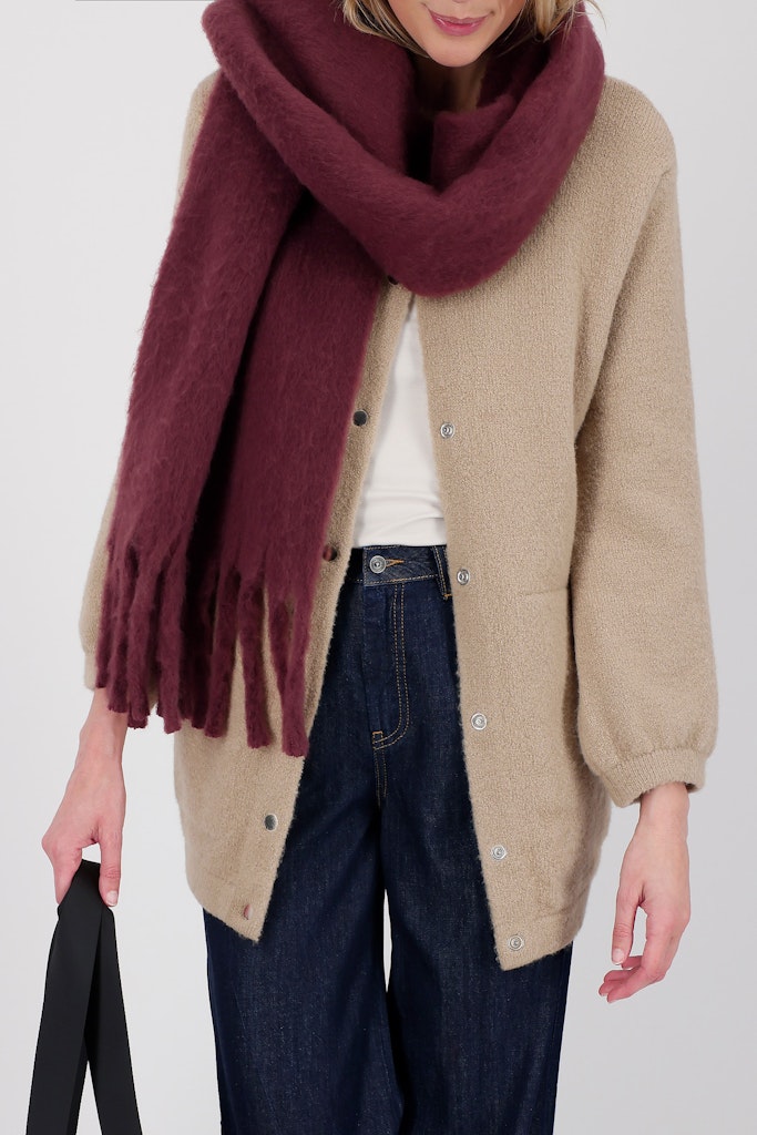 Der Fransenschal von Monari ist das perfekte Accessoire für stilvolle Herbst- und Winterlooks. In sanftem Rotton und mit flauschiger Haptik bringt er nicht nur Wärme, sondern auch eine elegante Note in jedes Outfit. Die langen, gedrehten Fransen sorgen für einen modischen Akzent und runden das Design charmant ab - ein Must-have für die kalte Jahreszeit.