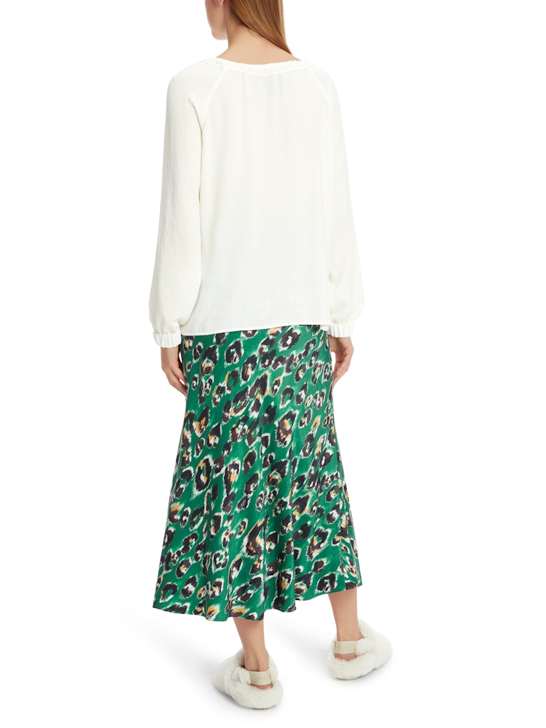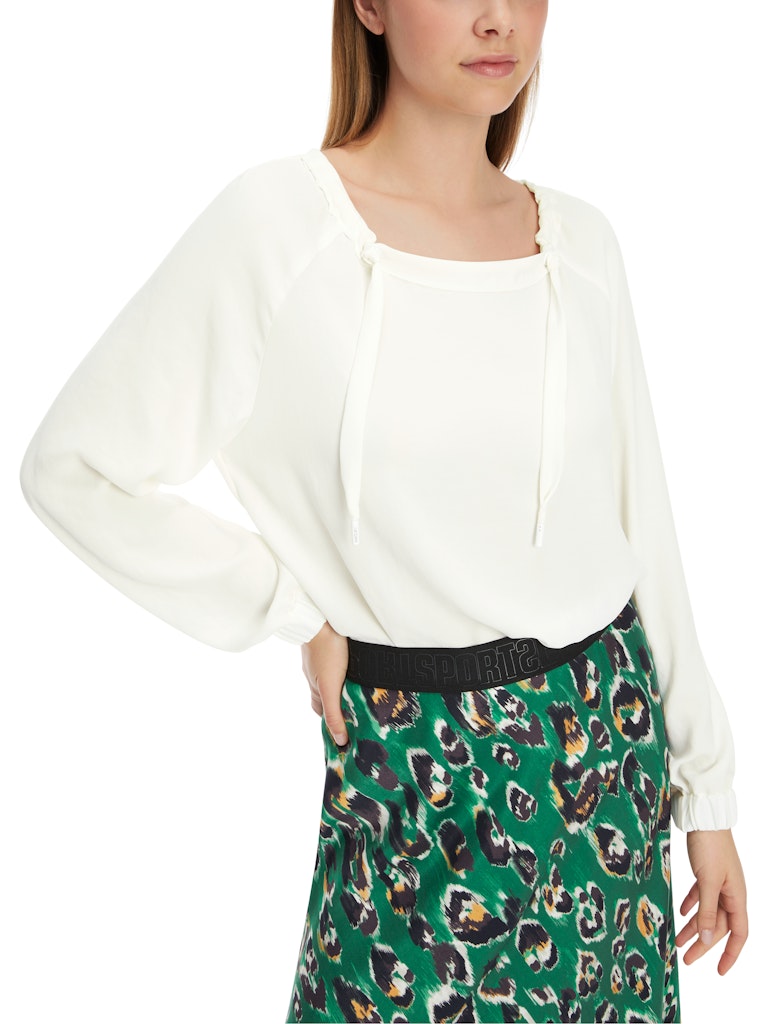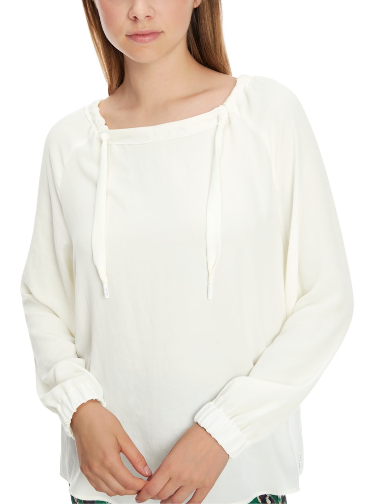 Schlupf-Bluse mit Kordel|Leger präsentiert sich diese Schlupf-Bluse mit weitem Schnitt und Raglanärmeln. Passend dazu besitzt sie ein weich fließendes Material. Der Rundhals-Kragen lässt sich per breiter Bandkordel individuell verstellen. Die langen Ärmel kommen mit elastischem Bund.|Weiter Schnitt|Elastische Ärmelbündchen|Made in Europe|Fließendes Material|Das Model ist 179 cm groß und trägt N3/38.
