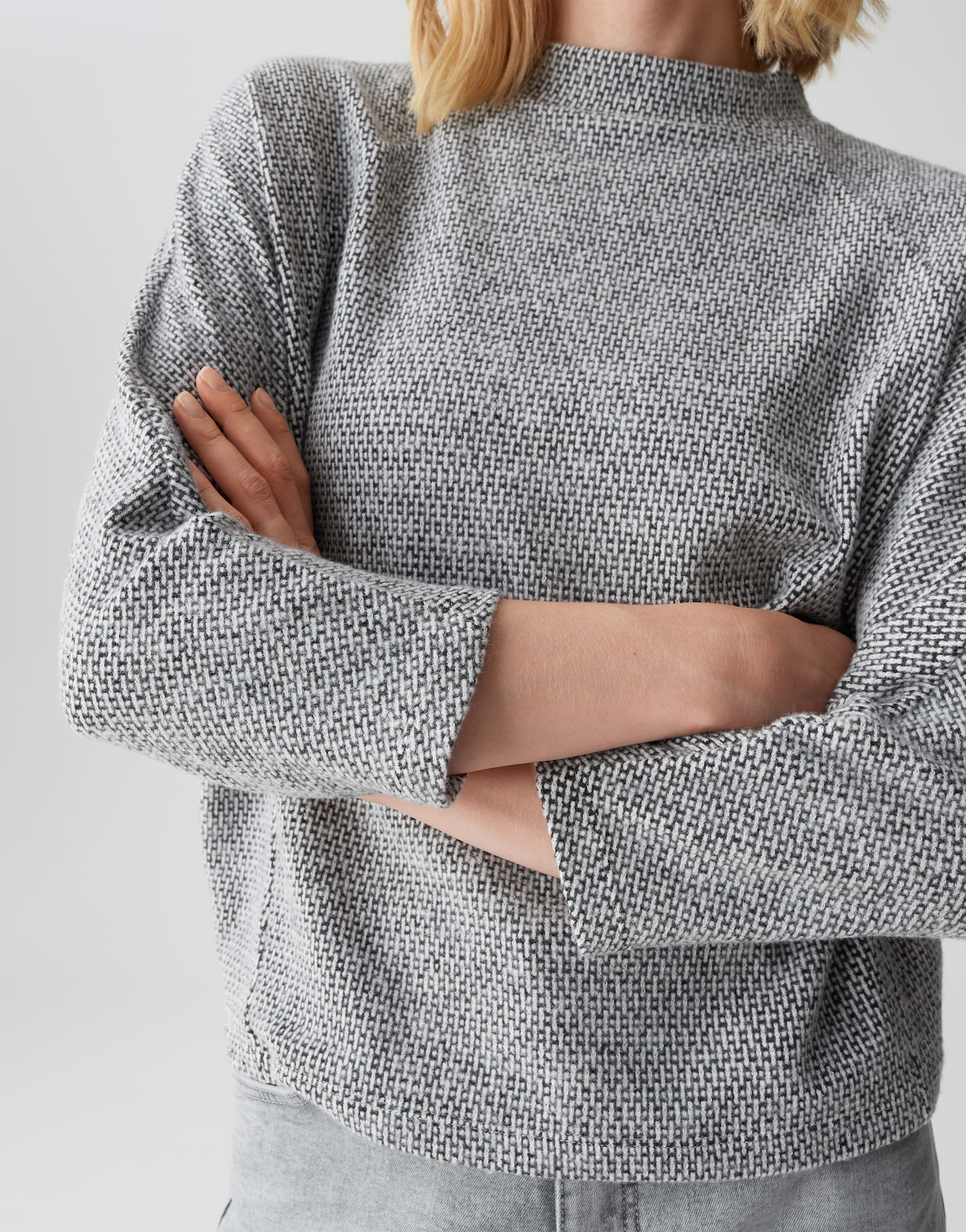 - Details/ Besonderheiten: Feines, grafisches Strickmuster, dezente Zweifarbigkeit
