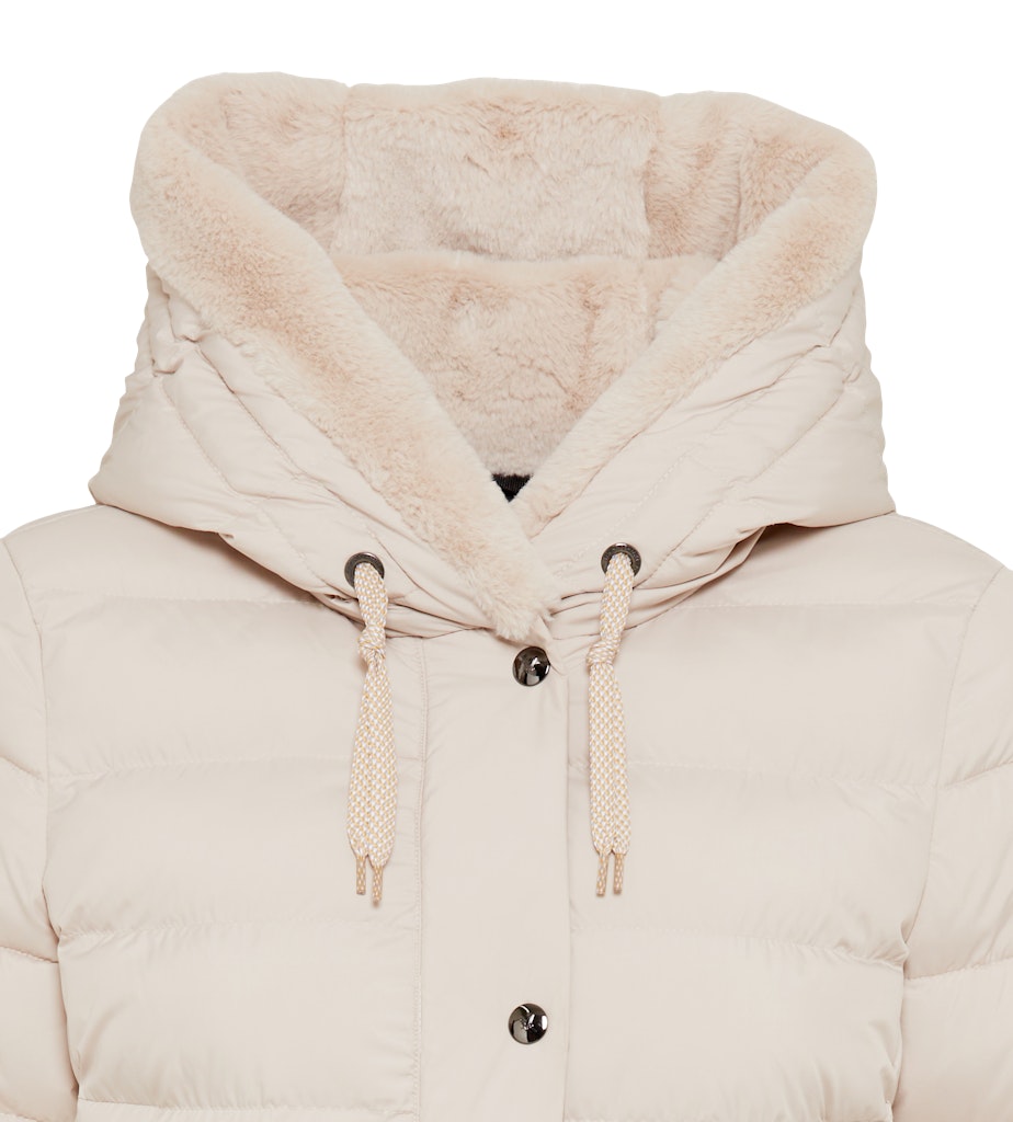Steppkurzmantel, Fake Fur, Ecofiber, angeschnittene Kapuze, Reiáverschlusstaschen, Reiáverschluss, We care for nature