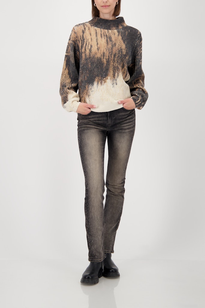 Stylischer Strickpullover aus einer hochwertigen Baumwollmischung, verziert mit glänzendem Lurex, Strasssteinen und einem eleganten Druckverlauf.