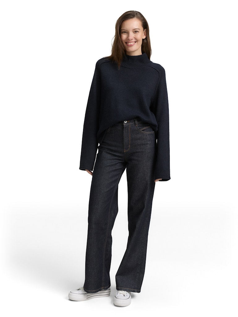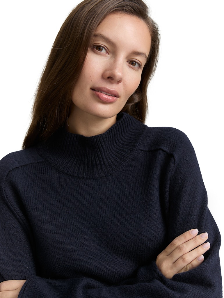 Der Strickpullover mit Stehkragen von Tom Tailor ist die perfekte Wahl für gemütliche und zugleich moderne Outfits. Sein weicher Feinstrick und der lockere Loose Fit bieten höchsten Tragekomfort, während die seitlichen Schlitze und der kleine Rückenschlitz am Kragen dem Look eine raffinierte Note verleihen. Ideal kombinierbar zu Jeans, Stoffhosen oder Röcken - für einen stilvollen Alltagslook mit Wohlfühlfaktor.