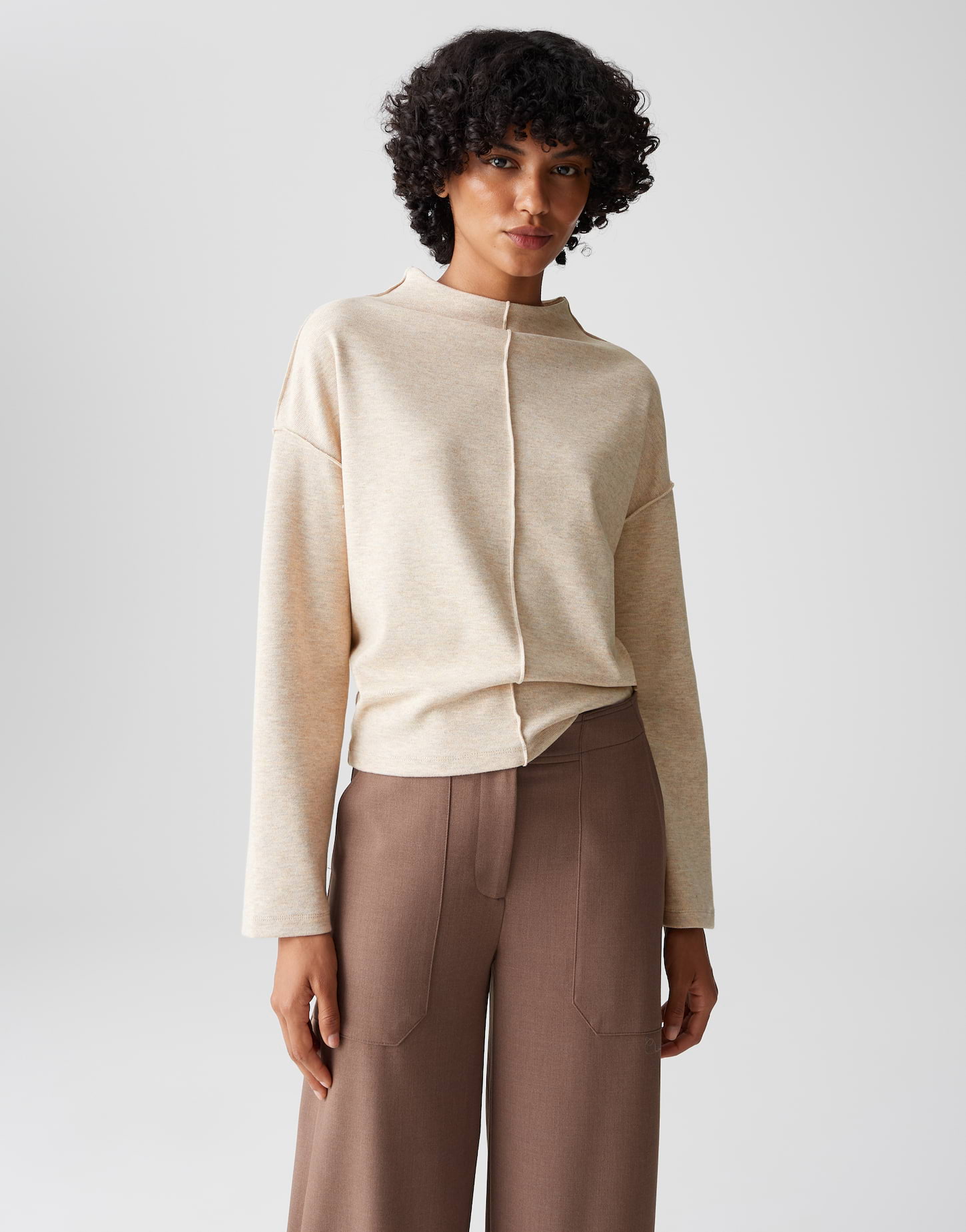 Minimalistisch, modern und herrlich bequem - dieser Sweater von Opus ist ein echtes Allround-Talent für entspannte Alltagslooks. Der schlichte Schnitt mit Stehkragen und die weiche Sweat-Qualität machen ihn zu einem Lieblingsstück im Kleiderschrank. Die dekorative Mittelnaht verleiht dem Basic-Teil einen besonderen Twist und lässt sich wunderbar vielseitig kombinieren - ob zu Jeans, Stoffhosen oder Röcken.