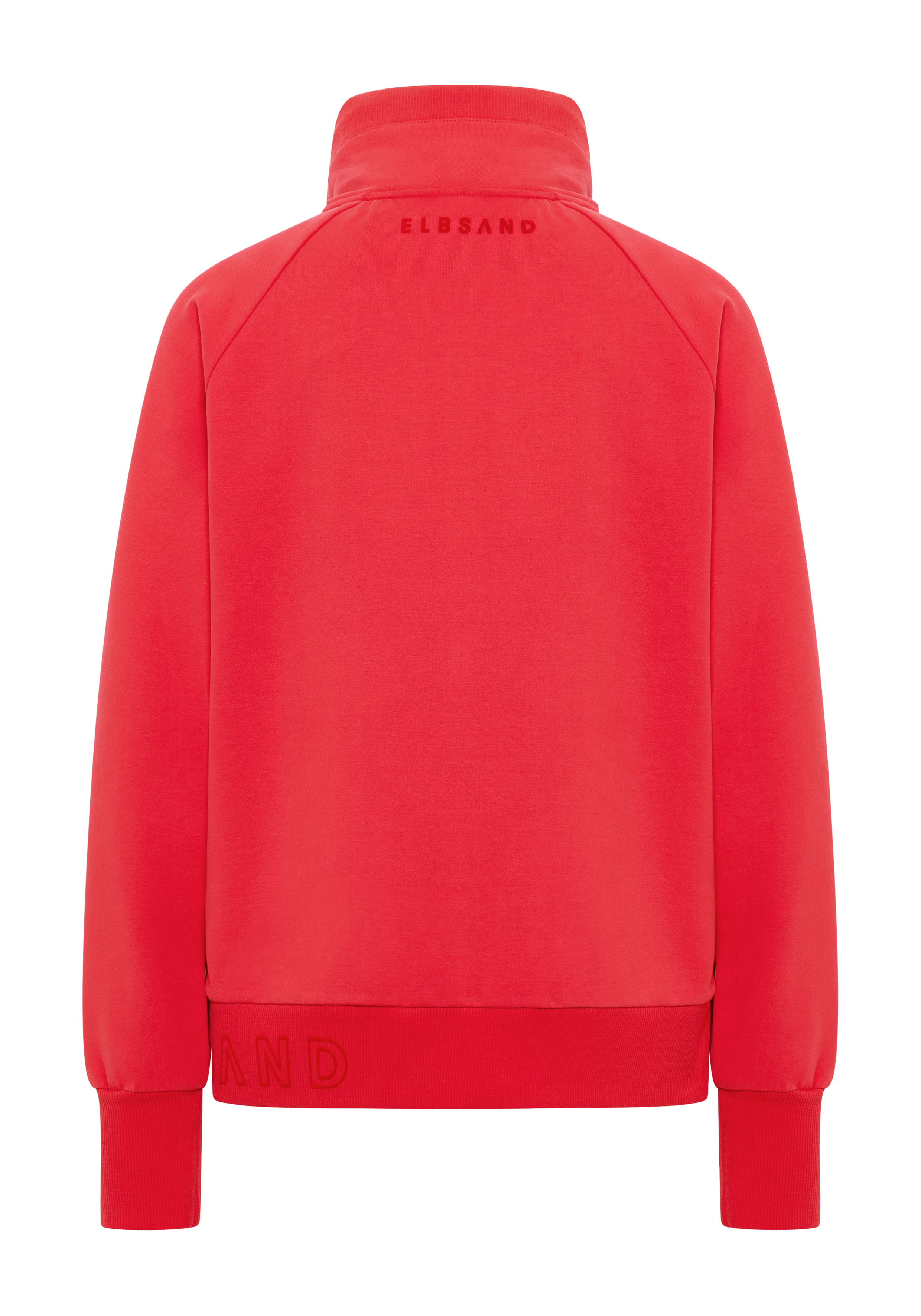 Die Sweatjacke "Aina" von ELBSAND vereint sportliche Funktionalität mit modernem Design. In der intensiven Farbe "Barberry" setzt sie ein modisches Statement und bleibt dabei herrlich bequem. Der hohe Kragen mit Kordelzug schützt an kühleren Tagen, während die elastischen Bündchen und der durchgehende Reißverschluss für optimalen Tragekomfort sorgen. Ein geprägtes ELBSAND-Detail am Saum rundet den Look stilvoll ab - perfekt für entspannte Alltagsoutfits mit einem Hauch Urban Chic.