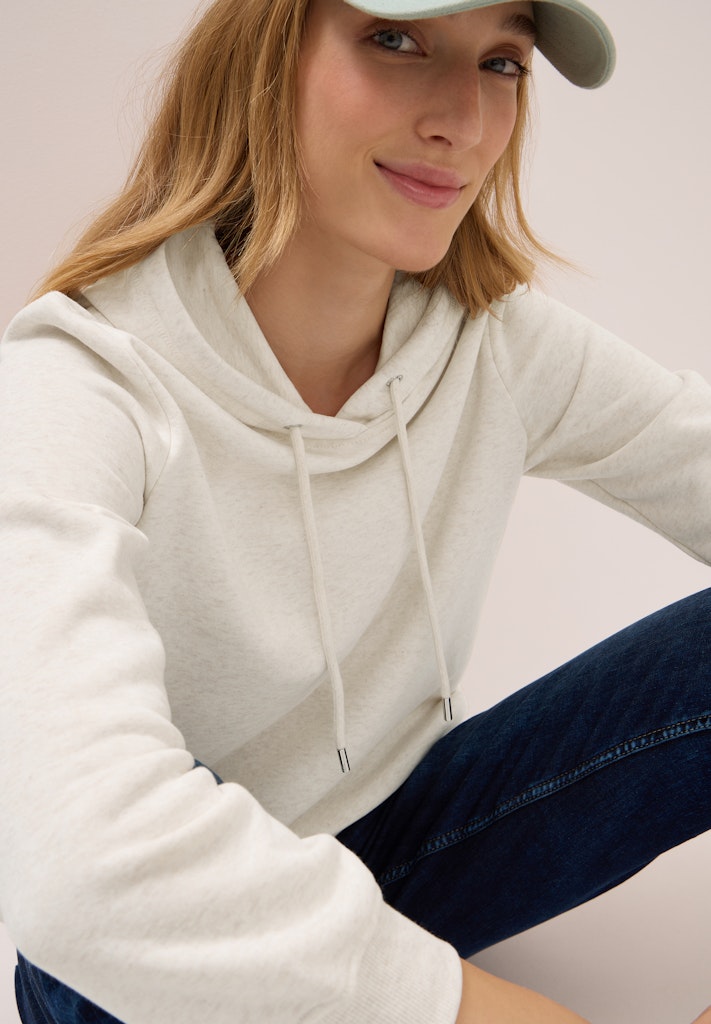 Das Hoodie-Sweatshirt von CECIL für Damen überzeugt mit weicher Sweatqualität und gemütlicher Kapuze mit Tunnelzug. Die unifarbene Optik macht es vielseitig tragbar – ob solo oder unter einer Jacke. Dank bequemer Bündchen ist es perfekt für entspannte Casual-Outfits.