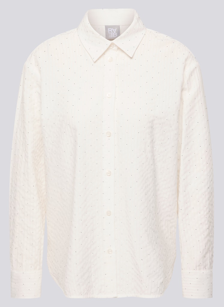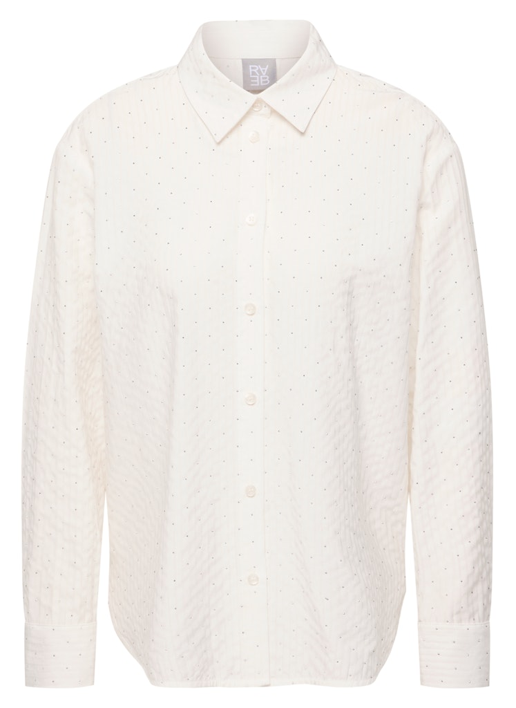 Die elegante Bluse überzeugt mit ihrem zeitlosen Schnitt und einem raffinierten Glanz. Die feine Struktur des Materials wird durch kleine, dezente Strasssteinchen ergänzt, die im Licht dezent funkeln. Eine Kellerfalte auf der Rückseite sorgt für angenehme Weite, während Manschettenabschlüsse und ein klassischer Kragen die Optik abrunden. Klassischer Hemdblusenkragen. Strukturierter Stoff mit feinem Glanz. Strassdetails für dezente Akzente. Rückseitige Kellerfalte. Gerade Passform mit langen Ärmeln.