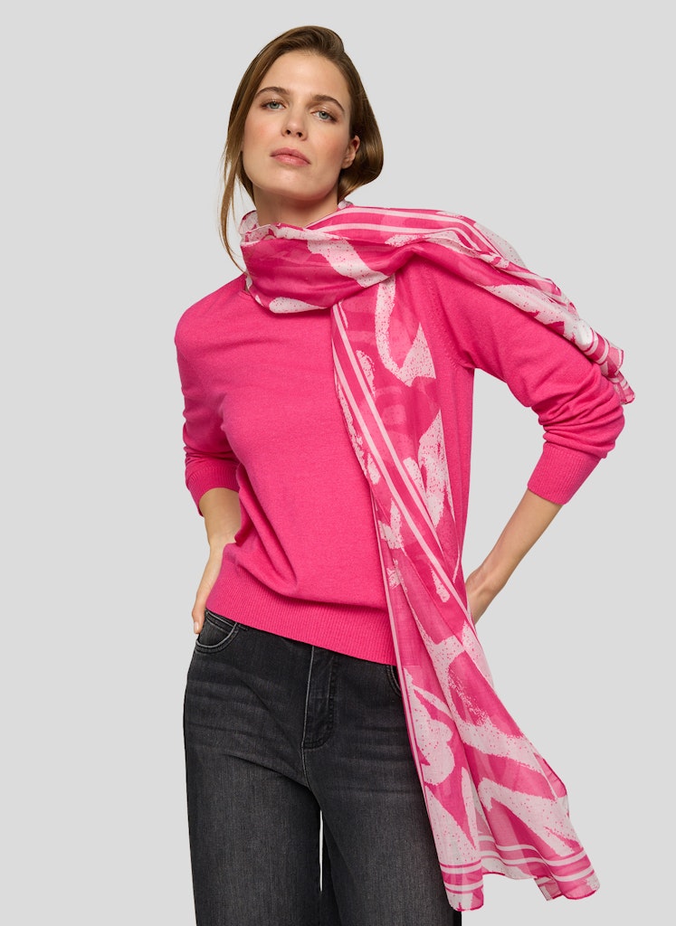 Dieser weich fallende Schal setzt mit seinem allover Schriftmuster in kontrastreichen Farben ein stilvolles Statement. Die rechteckige Form erlaubt zahlreiche Tragevarianten _ ob locker gelegt, geknotet oder geschlungen. Farblich abgesetzte Ränder mit schmaler Umrandung geben dem Design einen harmonischen Rahmen. Ideal als modischer Akzent für schlichte Outfits. Großflächiges Design. Leichtes, weiches Material. Vielseitig kombinierbar.
