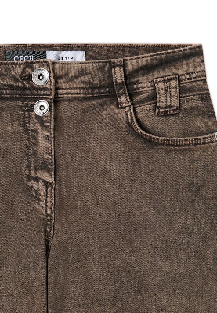 Die Jeans im Style Neele von CECIL für Damen setzt mit ihrem farbigen Denim-Look ein modisches Statement. Der Loose Fit mit High Waist und weiten Wide Legs sorgt für einen entspannten Sitz, während der 5-Pocket-Style den klassischen Jeanscharakter unterstreicht. Der elastische Baumwollmix bietet angenehmen Tragekomfort. Jeanshose im Colored Denim Look High Waist und Wide Legs Loose Fit 5-Pocket-Style Baumwollmix mit Stretchanteil Material: 81% Baumwolle, 17% Polyester, 2% Elasthan