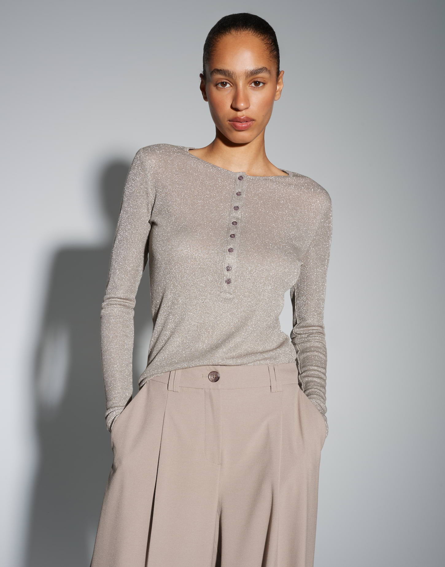 - Details/ Besonderheiten: Kurze Knopfleiste, Henley-Stil, dezenter Schimmer durch Metallfaser